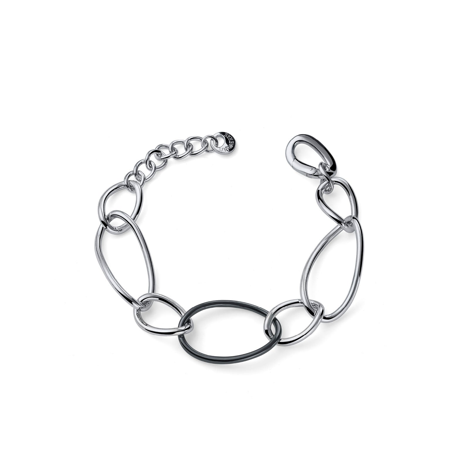 Bracciale in argento rodiato, catena a maglie ovali e maglia in ceramica nera. Lunghezza 16,50 + 3,00 cm. Un gioiello dalla linea elegante e leggera con un dettaglio unico ed originale, per un tocco di seduzione ad ogni tuo look. Scopri l'esclusiva collezione in argento Aria, dove leggerezza e minimal design sono le parole chiave per esaltare ed esprimere il tuo stile.