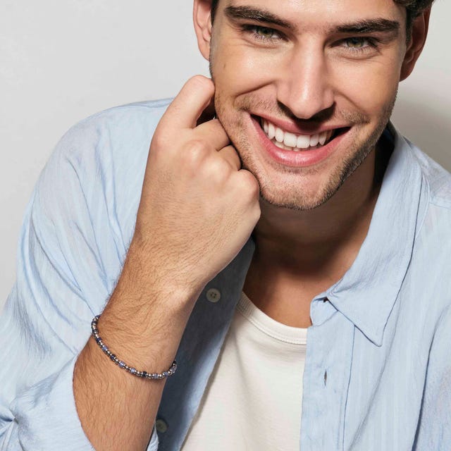 Piccole pietre naturali dalle tonalità vivaci si alternano alla brillantezza dell’acciaio per un bracciale unisex, da matchare e mixare con altri gioielli per uno stile deciso ed inconfondibile.