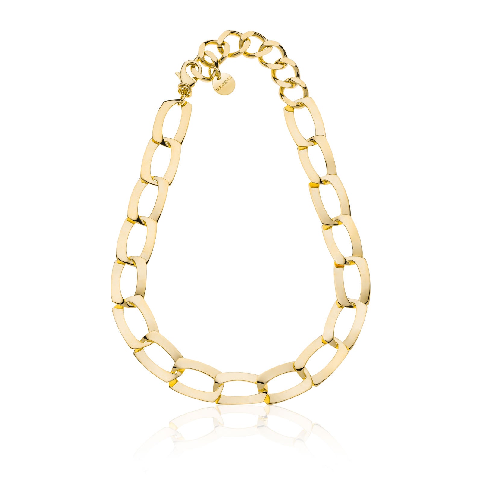 Valorizza il tuo stile con il design audace di questa collana con maglie squadrate piatte e chiusura a moschettone. La sua linea geometrica ed essenziale catturerà l'attenzione senza bisogno di dettagli o decori aggiuntivi. Un gioiello unico in cui l'eleganza della catena è assoluta protagonista e si svela in tutta la sua incredibile versatilità.