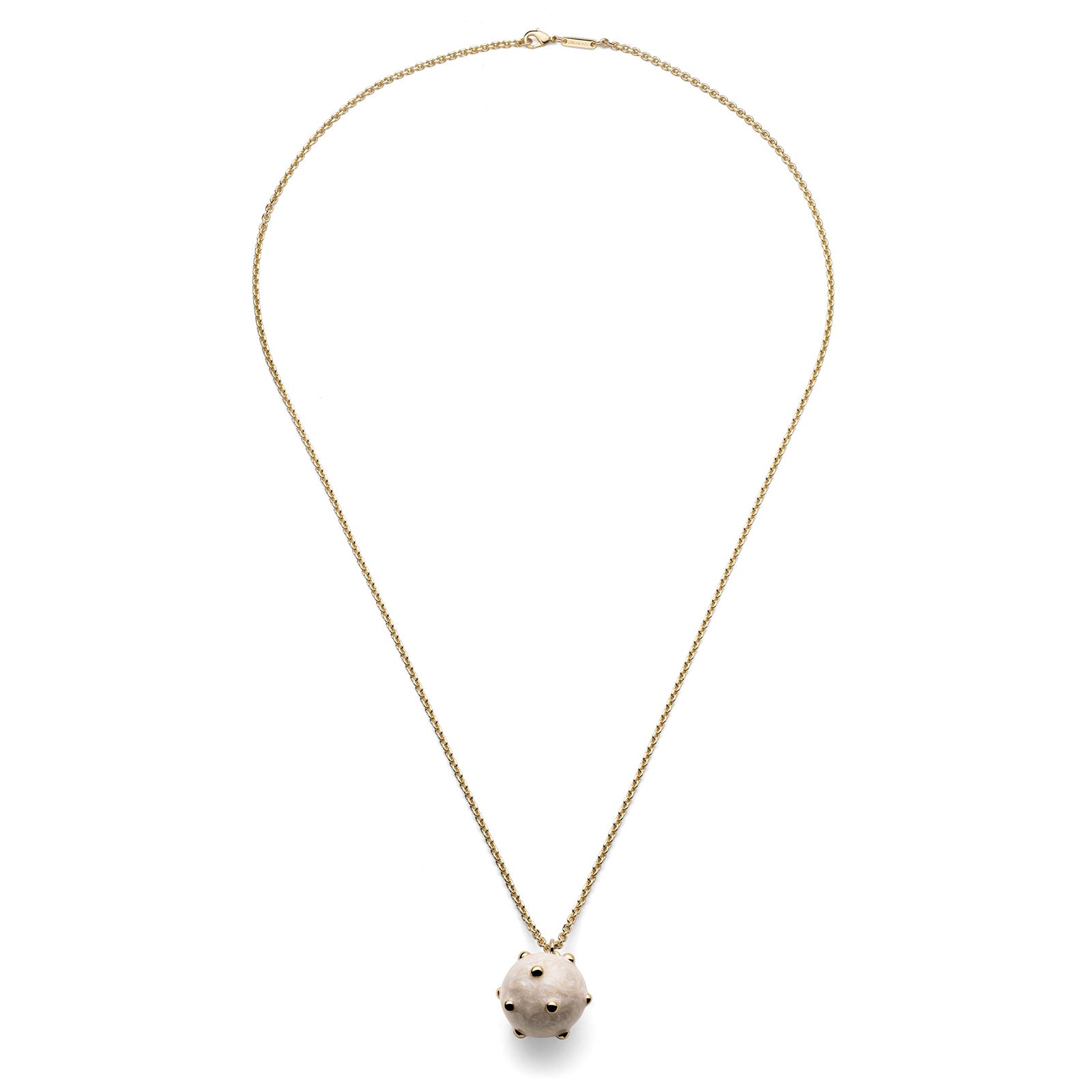 Collana lunga con ciondolo a forma di mina grande e smalto bianco madreperlato, misura 82,00 cm. Unoaerre rivisita un grande classico del gioiello prendendo spunto direttamente dagli archivi storici anni '50. Tornano così le iconiche Mine, nate nel secondo dopoguerra con l'intento di esorcizzare le paure e le sofferenze passate. Simbolo di rinascita e nuova prosperità, furono indossate anche da Sophia Loren nell'intramontabile film "Ieri, Oggi e Domani". Scopri tutta la collezione e divertiti a creare il tuo mix unico con i gioielli coordinati.