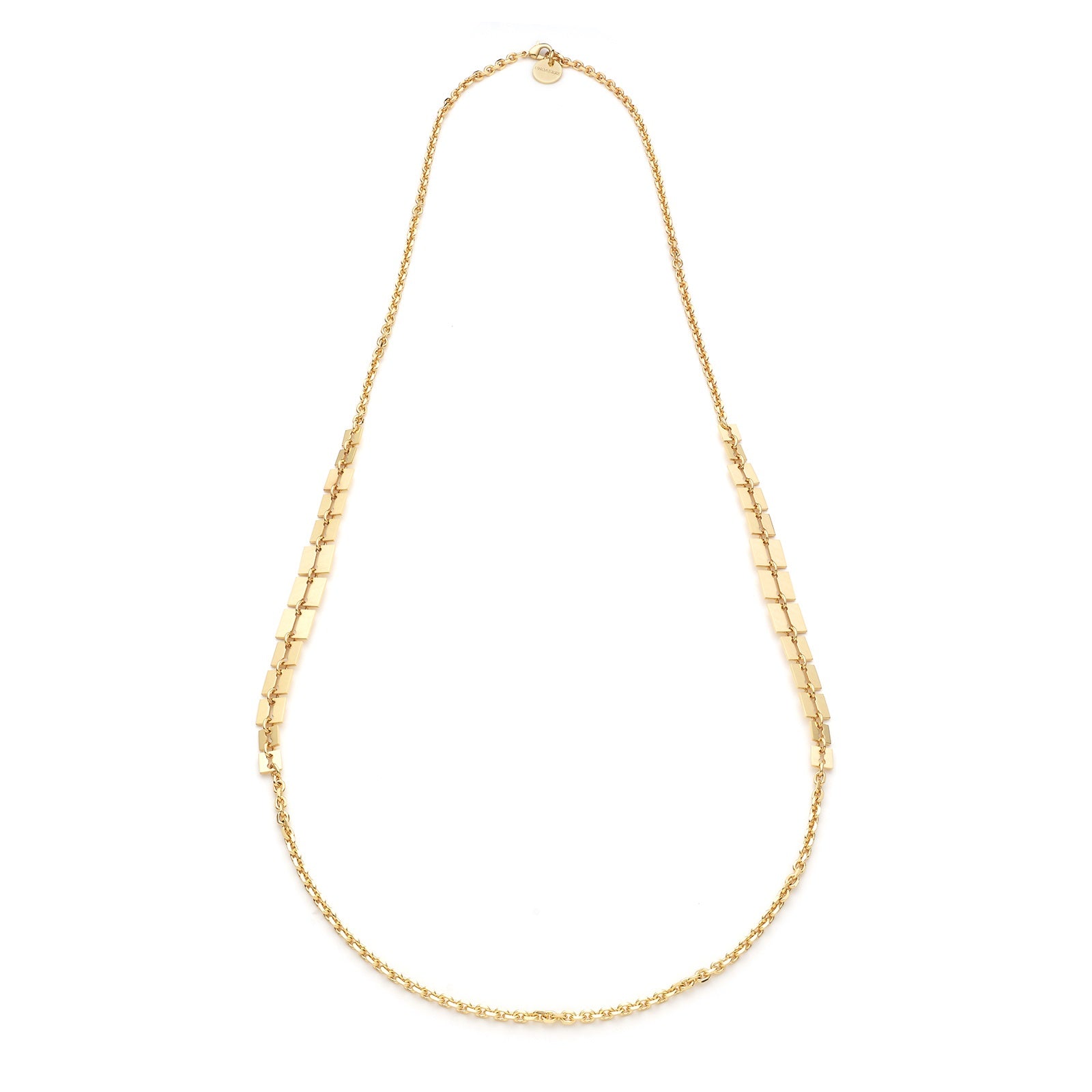 Collana lunga Lux con maglie piatte quadrate concatenate alternate a catena in piccole maglie ovali. Chiusura a moschettone, misura 88,00 cm. Se cerchi un accessorio che illumini i tuoi look quotidiani, questa collana chanel è decisamente perfetta. Le maglie quadrate rifletteranno ogni luce e ti faranno brillare in tutte le occasioni. Scopri la collezione Lux ed indossala insieme ai gioielli coordinati per catturare ogni attenzione.
