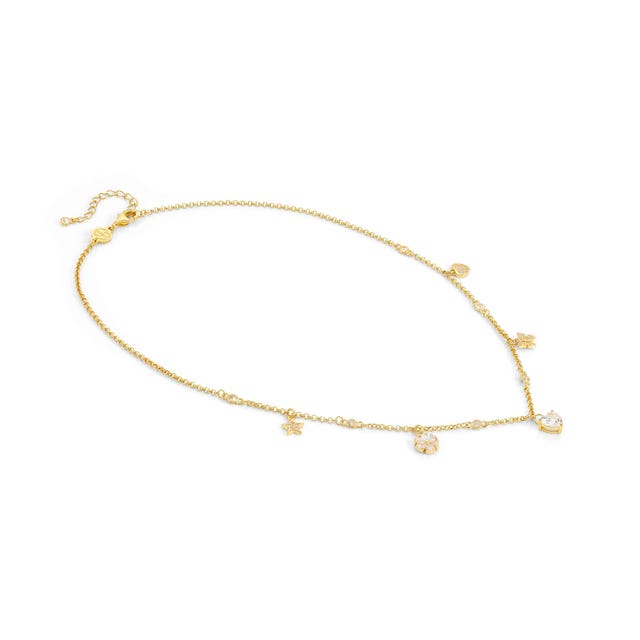 Collana in Argento 925 con rivestimento superficiale in Oro Giallo oppure Rodio Bianco e Cubic Zirconia Bianchi. Lunghezza: 42 cm messa a misura 38 cm. Misure Pendenti 0,7x0,7 cm; 0,55x0,55 cm; 0,5x0,5 cm; 0,5x0,5 cm; 0,6x0,6 cm. Chiusura con Cubic zirconia bianco. Made in PRC. Un tocco elegante per illuminare le tue serate.