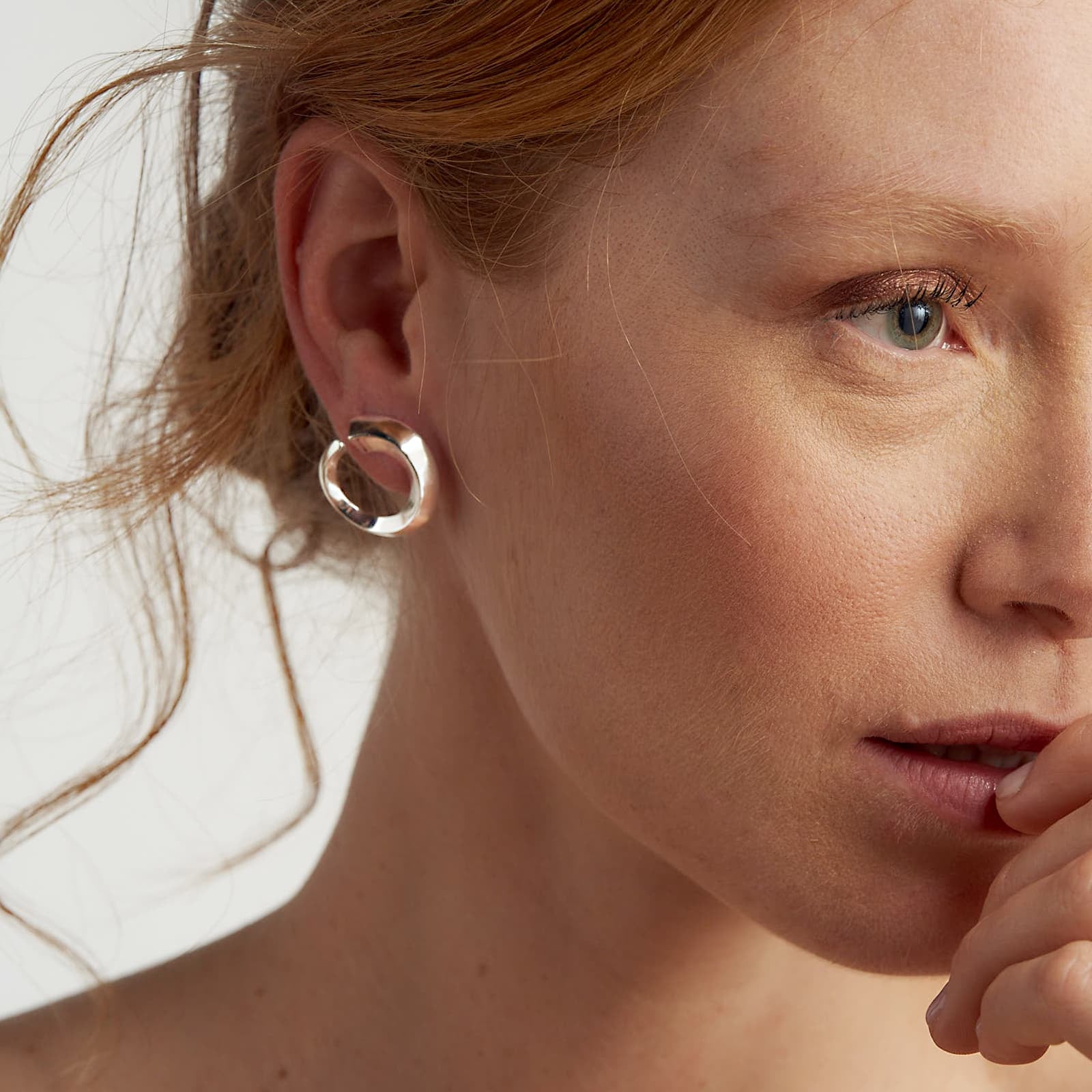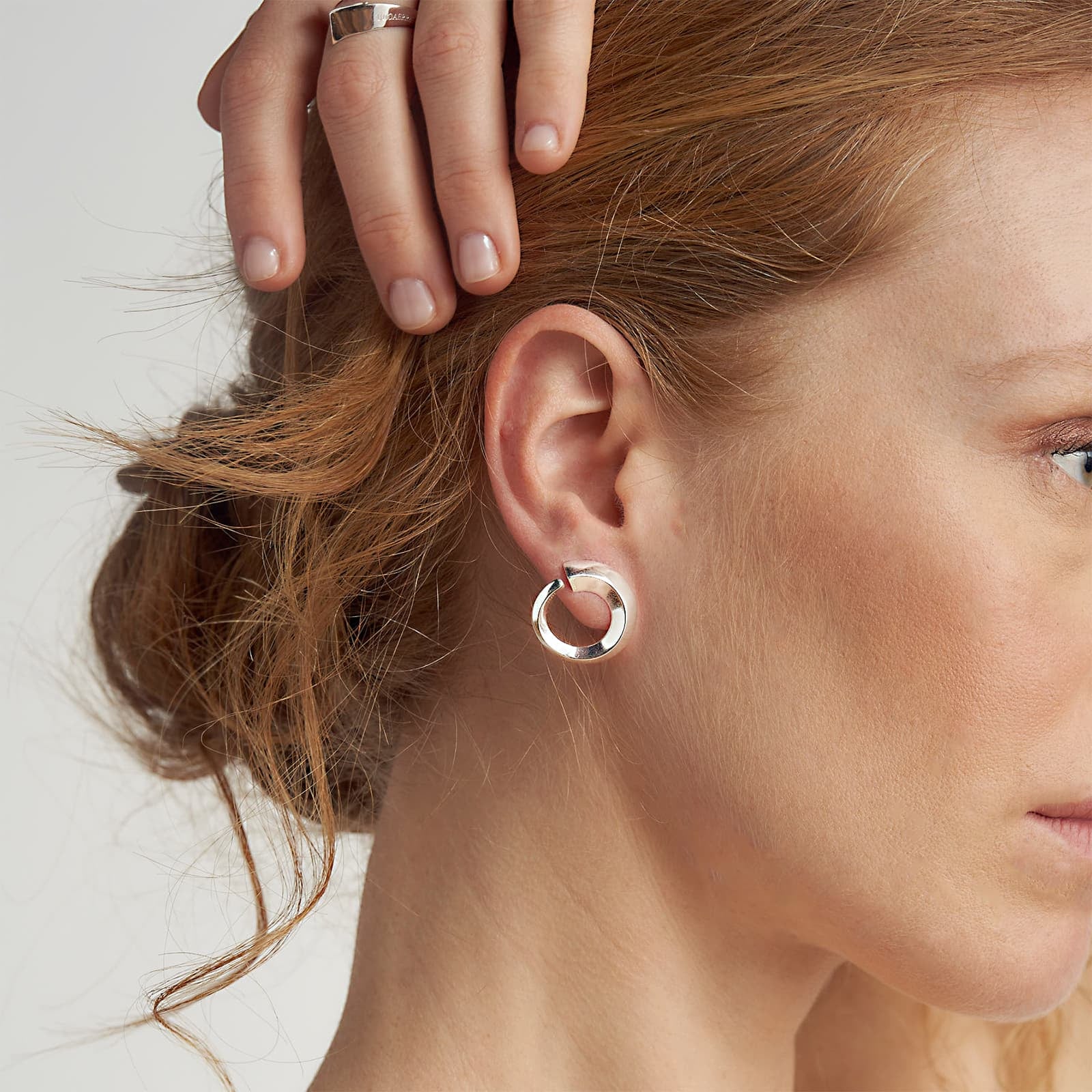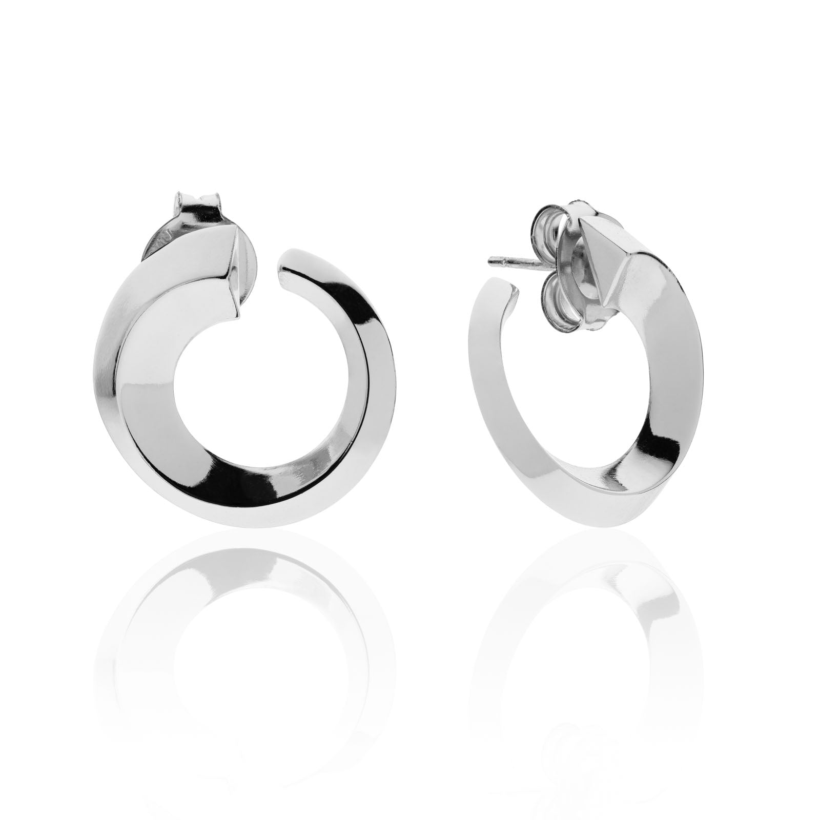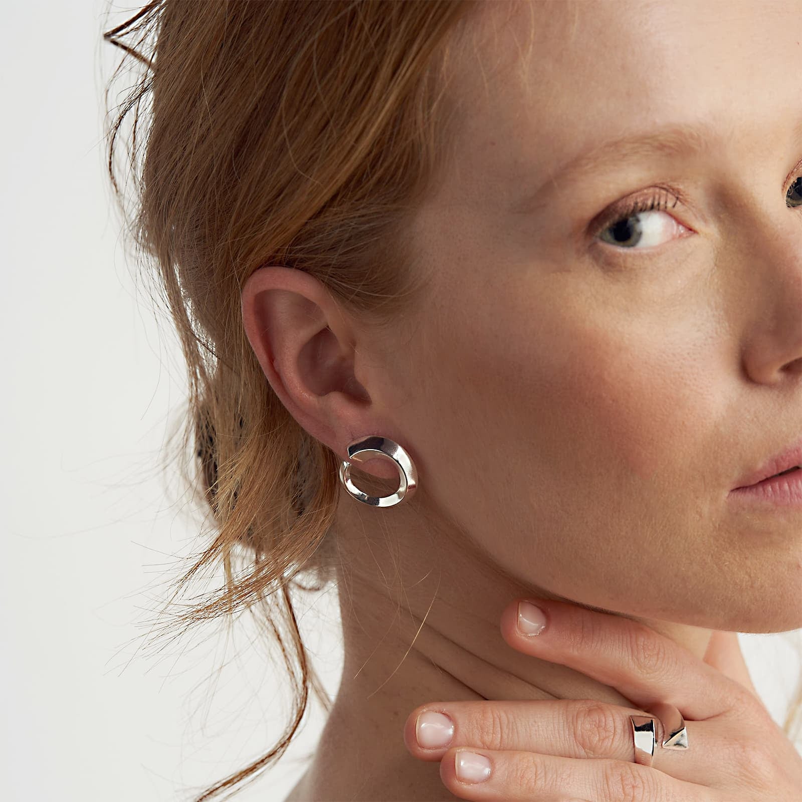 Orecchini donna contrarié argentati con tubo triangolare. Chiusura a perno e farfalla. Iconico ed essenziale nella sua forma, il dettaglio geometrico è protagonista in questi orecchini che reinterpretano il gioiello non solo come accessorio di stile, ma come testimone di esperienze ed espressione di differenti storie e personalità.
